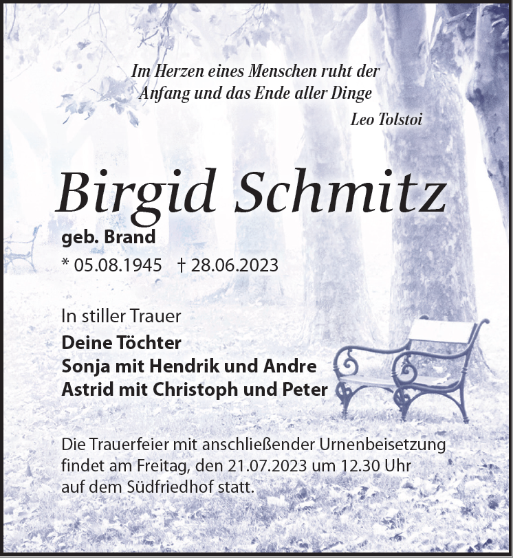 wir wünschen Ihnen von Herzen viel Kraft, dass Sie Menschen um sich haben, die Ihnen in dieser schweren Zeit beistehen und Halt geben. Zusätzlich können Sie auf dieser Gedenkseite Erinnerungen teilen und so das Andenken gemeinsam wachhalten.
