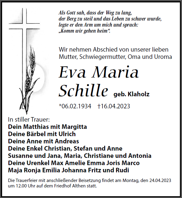 Eva Maria Schillegestorben am 16. April 2023